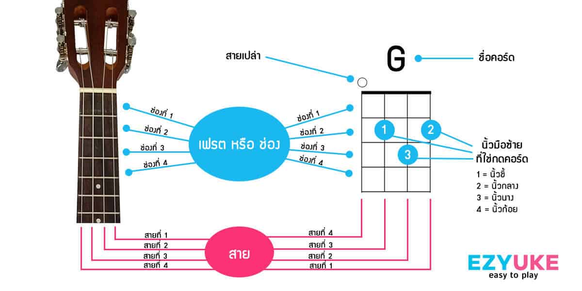 วิธีอ่านตารางคอร์ดอูคูเลเล่